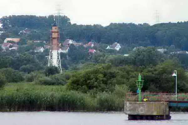 ![]() Schanzen, Unterfeuer (Nr. 515) Position: 53°33´N 14°36´O Kennung: Ubr.Flüssiggas Feuerhöhe über Mittelwasser: 15 m Turmhöhe über Erdboden: 16,5 m Sichtweite: 12 Sm Angaben: Zylindrischer, oben schwarzer, unten weißer, eiserner Turm mit zylindrischer Laterne, zwei Galerien ![]() Schanzen, Oberfeuer (Nr. 516) Position: 53°33´N 14°36´O Kennung: Ubr.Petrol. Feuerhöhe über Mittelwasser: 25,8 m Turmhöhe über Erdboden: 28,2 m Sichtweite: 15 Sm Angaben: Viereckige, oben schwarze, unten weiße, eiserne Bake mit zylindrischer Laterne, zwei Galerien und kegelförmigem Dach, etwa 3,6 Kblg rw. 171° vom Unterfeuer |