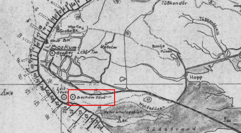 Borkum-Düne (2424), etwa 1,2 Kblg O-lich vom Leitfeuer Borkum