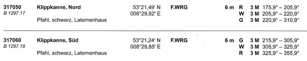 Neue Sektorenfeuer Klippkanne-Nord und -Süd
