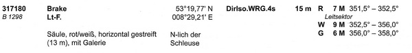 Feuer Brake mit Glt. w/r/gn. 4s auf 53°19,81´N 008°29,28´E und