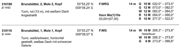 Geogr. Lage: Bunsbüttel Leuchtfeuer Mole 2 (53°53,25′N 009°08,24′E)