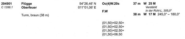 Flügge (C 1288.1; 04900) Geogr. Lage: 54°26´N 11°01´E Oberfeuer Flügge (C 1288.1; 05141) Geogr. Lage: Im gleichen Feuerträger