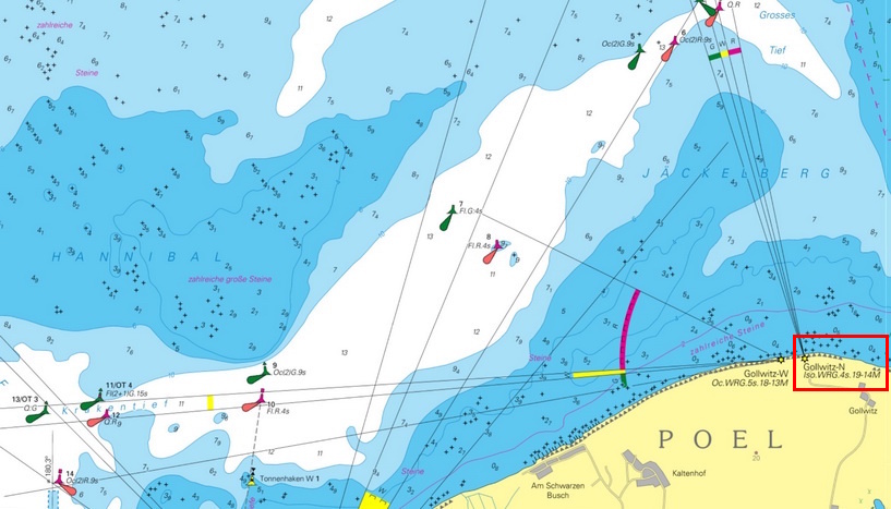Gollwitz-N durch (T) Feuer mit F. WRG. 13m 19-14M auf 54°01,4´N