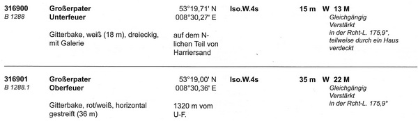 ... Die Baken auf dem Großen Pater stehen westlicher wie die provisorischen, das neue Oberfeuer steht unweit km