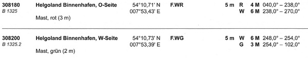 Geogr. Lage: Richtfeuer Ansteuerung Helgoland; Richtfeuer Binnenhafen Helgoland