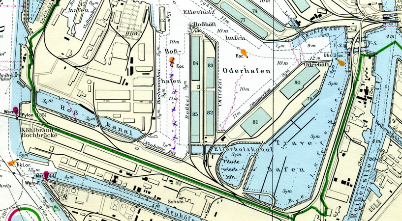 Oderhafen Ost (B1593.981) Position: 53°31.5´N 9°57.95´E Oderhafen West (B1593.982) Position: 53°31.52´N 9°57.69´E
