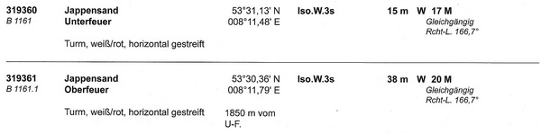 Am 6. Juni 2012 wurde die Richtfeuerlinie Jappensand in Betrieb genommen
