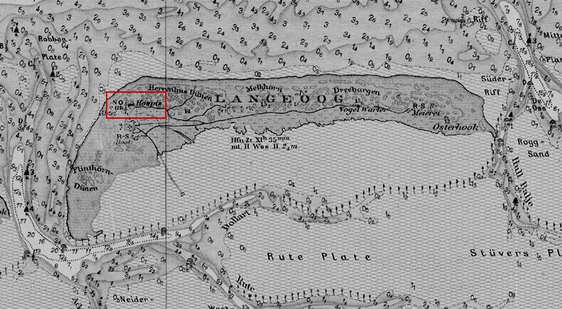 auf der Westseite der Insel, nordwestlich vom Dorfe, unter 53°44´9 N. Breite und 7°28´5 Oestl.