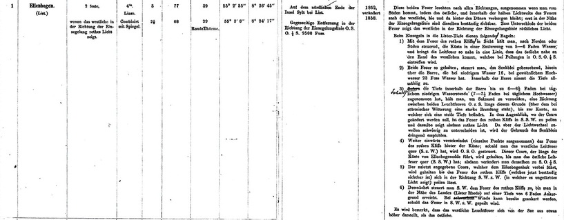 Anmerkungen: Diese beiden Feuer (List-Ost und West) leuchten nach allen Richtungen, ausgenommen wenn man vom