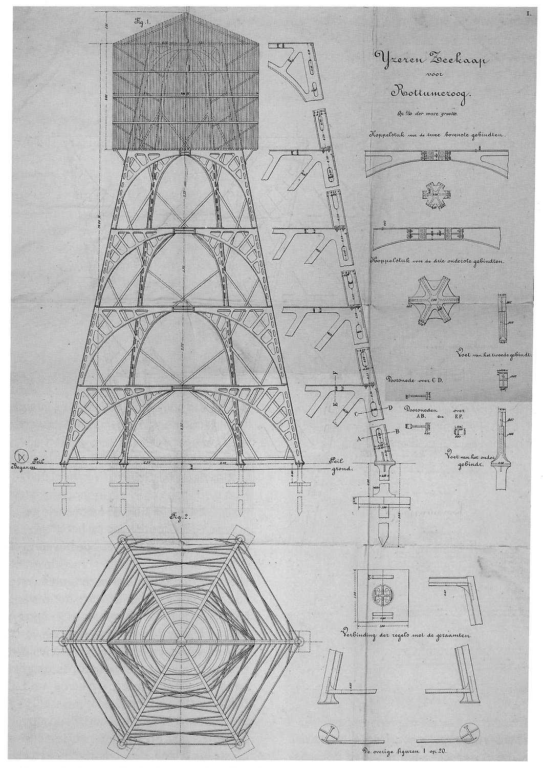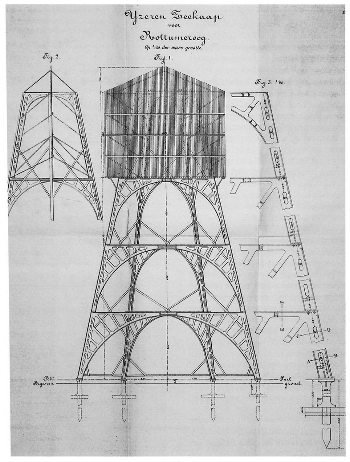 Marineministerium der Bau eines eisernen Seekaaps sowie deren Aufstellung auf der Insel Rottumeroog ausgeschrieben.Hierfür waren sechs Angebotszettel eingegangen. Der günstigste Anbieter war die Firma Schretlen & Co. aus Leiden zum Preis von 4684 Gulden." Quelle: "Opregte Haarlemsche Courant" v. 9.4.1864 |