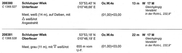 Das Richtfeuer Schlutuper Wiek (Lfd. Nr. 208381) wird in der Zeit vom 24. bis 31. Januar 2022 abgeschaltet