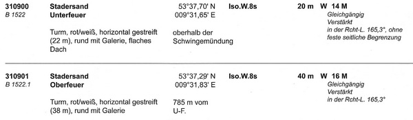 a) Stadersand, Unterfeuer Geogr. Lage: Ungf. 53°37,7´N, 9°31,7´E