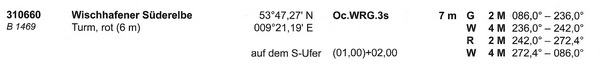 Vom 02.06.2021 bis voraussichtlich 30.06.2021 wird das Sektorenfeuer Wischhafener Süderelbe (Nr. 310660)
