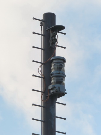 ![]() Unterfeuer Fischereihafen II-S-Becken (B 1277) Position: 53°30´N, 008°35´E Kennung: F. Nenn-TW: 4 M Angaben: Mast mit Dreiecktopzeichen, Spitze oben ![]() Oberfeuer Fischereihafen II-S-Becken (B 1277.1) Position: 53°30´N, 008°35´E Kennung: F. Höhe: 11 m Nenn-TW: 5 M Angaben: Mast mit Rechtecktopzeichen, 40 m vom Unterfeuer Foto: G.Liedtke 2007 |