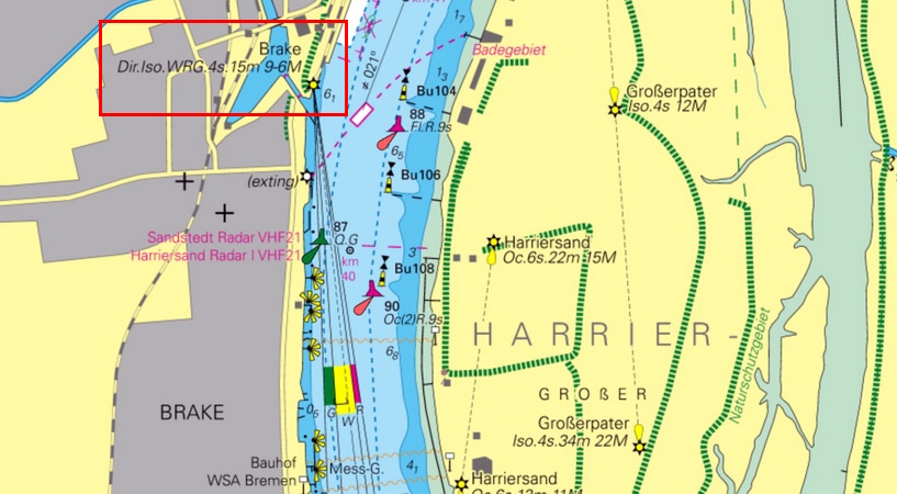 Angaben: Die Richtfeuer und die Richtfeuerlinie sind zu streichen.
