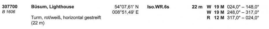 ⇒ Leuchtfeuertechnische Angaben