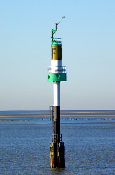 Die Bake "V" auf Position 53°55,2380´N 008°41,2240´E wurde eben unterhalb der