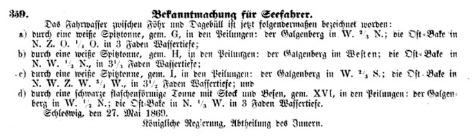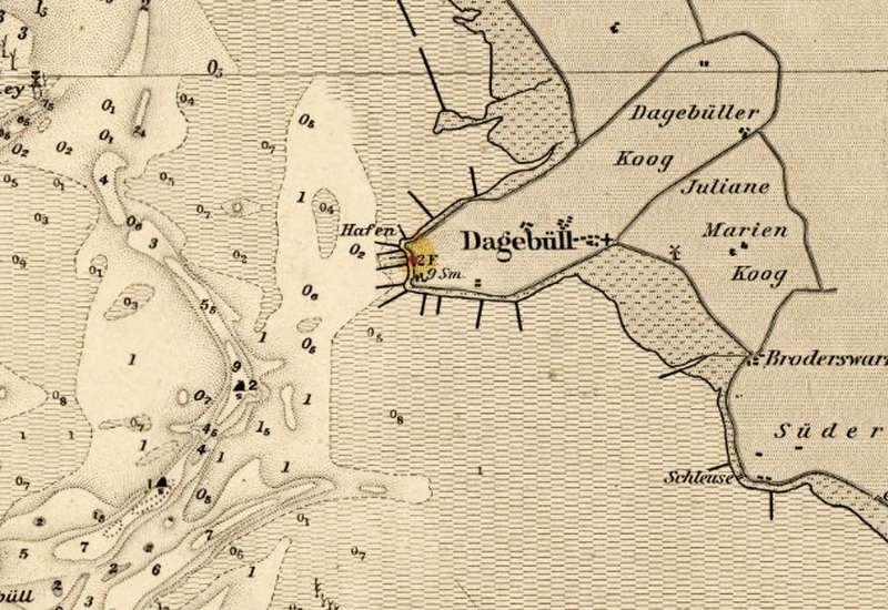 Dagebüll (Nr. 72), auf dem Seedeiche vor der alten Hafeneinfahrt. 2 Leitfeuer in der Richtung NNO