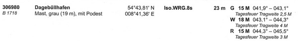 Auf Grund von Wartungsarbeiten wird das Leuchtfeuer Dagebüllhafen, ISO.WRG.8s, auf der o.g. Position am