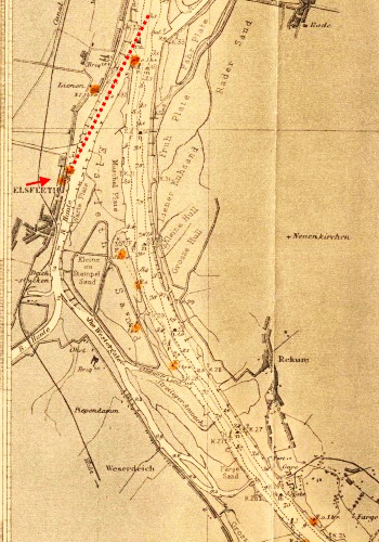 Auf der Weserstrecke zwischen der Fischerei Hohenzollern bei Elsfleth und Vegesack sind