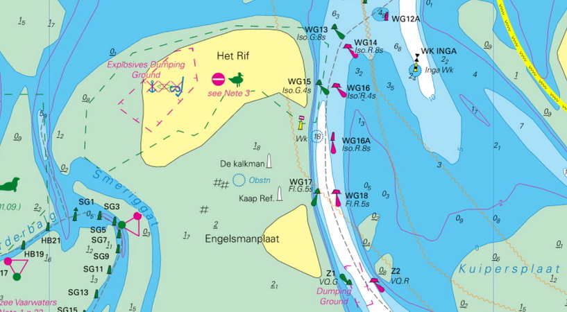Angaben: Die Richtfeuerlinie durch das Plaatsgat ist jetzt unbrauchbar, das N-Feuer ist darum gelöscht