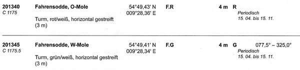 Ost-Mole Fahrensodde (201340 / C1175) Position: 54°49,43´N, 009°28,36´E West-Mole Fahrensodde (201345 / C1175.1) Position: 54°49,41´N, 009°28,34´E |