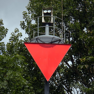 Angaben: Grauer Mast mit rotem Toppzeichen, △