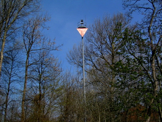 Angaben: Schwarzer, hölzerner Mast, 60,8 m rw. 347,2° vom Unterfeuer