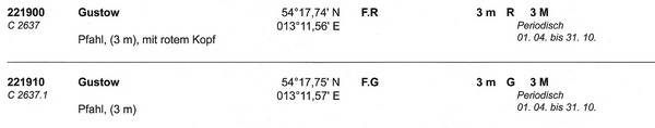 Im Zuge der Kennzeichnung der Zufahrt zum Naturhafen Gustow werden zum 01.04.2014 zwei Molenfeuer gezündet.