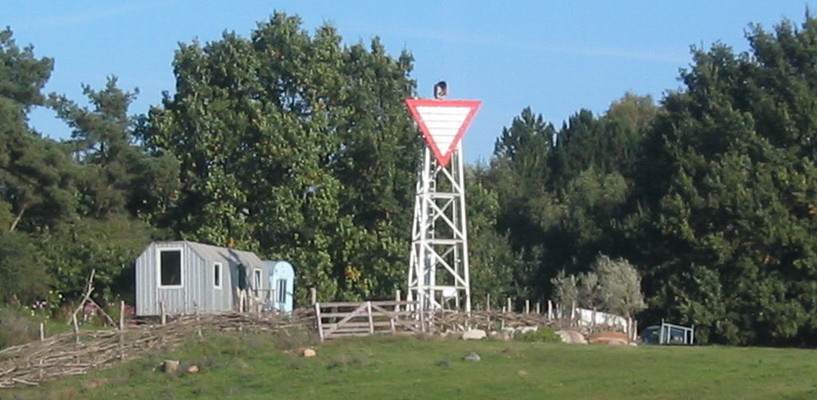 Konstruktion Feuerträger: 3,0 m hoher Holzdalben mit rotem Kopf