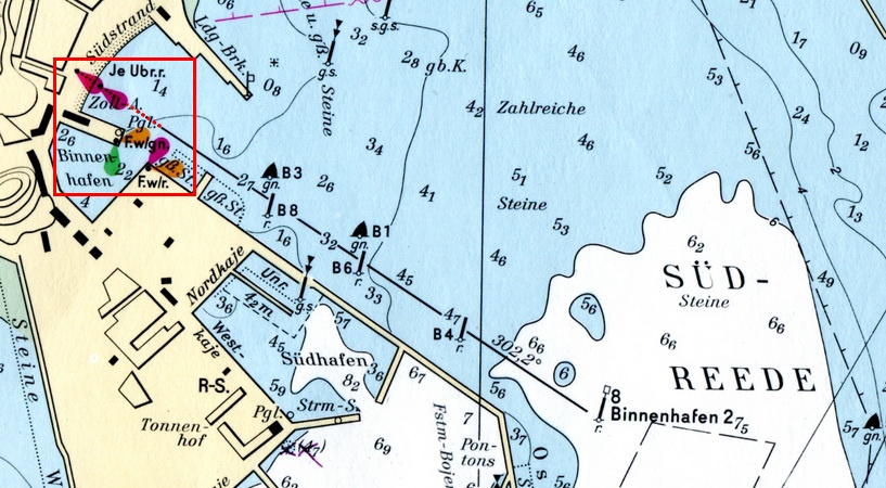 Angaben: Die Baken sind in 302,2° in Linie. |