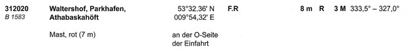 Bemerkungen: Das Feuer ist so abgeblendet, daß die S-liche Grenze des Fahrwassers nicht beschienen wird.