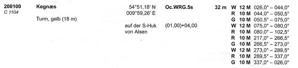 Angaben: gelber, runder Turm (18m), auf der S-Huk von Alsen
