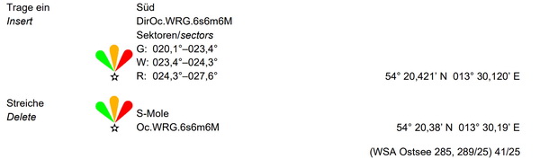 Folgende Änderungen haben sich beim Sektorenleitfeuer "Lauterbach, S-Mole" ergeben: