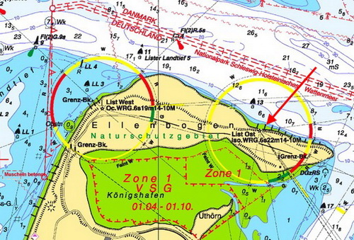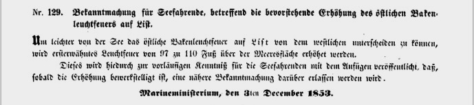 Anmerkungen: Diese beiden Feuer (List-Ost und West) leuchten nach allen Richtungen, ausgenommen wenn man vom