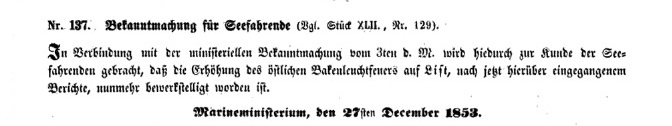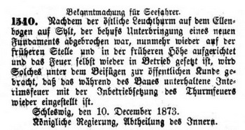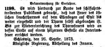 Dieselbe Regierung ((in Schleswig)) theilt ferner mit, dass, nachdem der östliche Leuchtthurm von List (auf dem