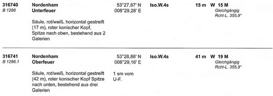 Angaben: Die Feuer sind in 355,9° in Linie und gleichgängig |
