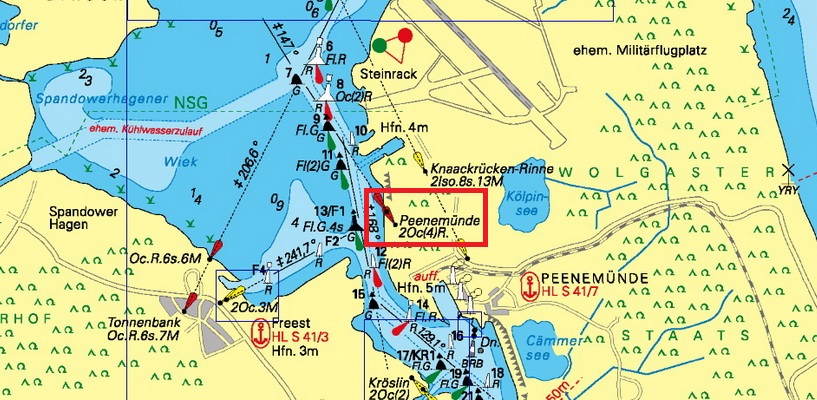Die N-liche der Richtungsbaken für die Peenemünder Rak genannte Strecke des Peene-Stromes ist in alter Form