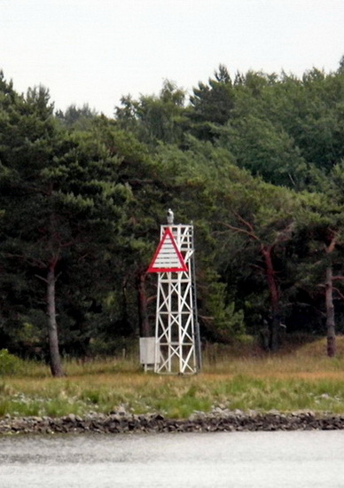 Feuerträger: weiße, hölzerne Bake mit weißem, rotumrandetem △