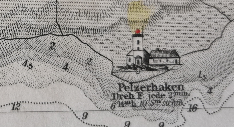 Das "Generalzollkammer- und Commerzkollegium in Kopenhagen" schrieb am 19.November 1840 an die "Königliche schleswig-holstein-lauenburgische Kanzlei Gottorf": ![]() "Da beim Einläufe in die Neustädter Bucht, am sogenannten Pelzerhaken, ein Sandriff