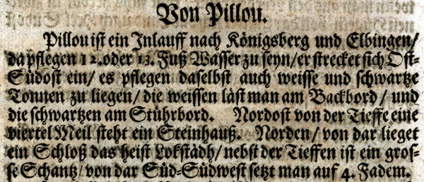 "... Bey Pillau ist die Einfahrt nach Frische Haff, welches Fahrwasser sowohl durch den heftig