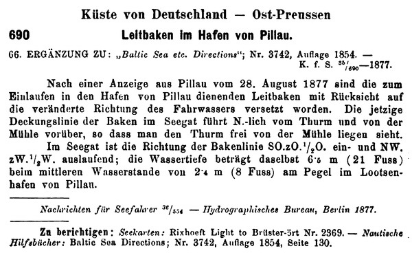 Laut Mittheilung der Königlichen Hafenbau-Inspektion zu Pillau soll die "Große Bake" (33 m hoch), welche