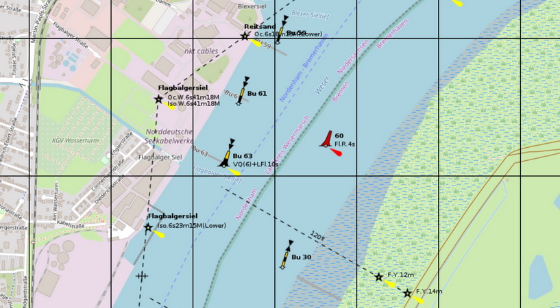 ![]() ![]() ![]() ⇒ Richtfeuer-Linie Flagbalgersiel