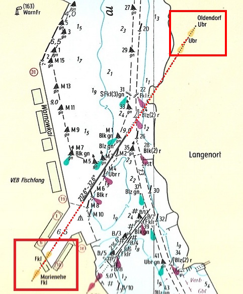 Angaben: Die Feuer sind Gegenrichtfeuer zu den ⇒ Marienehe-Richtfeuern. |