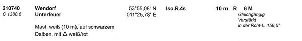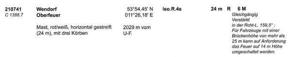 Angaben: Das Nebenfeuer F. r. im Feuerträger des Wendorf-Oberfeuers ist zu streichen. |